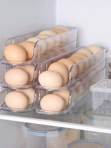 AREXOL - Egg Storage Containers 3 Pack Stackable Clear Acrylic Trays for Kitchen or Fridge Use Vertical and Horizontal Design for Saving Space