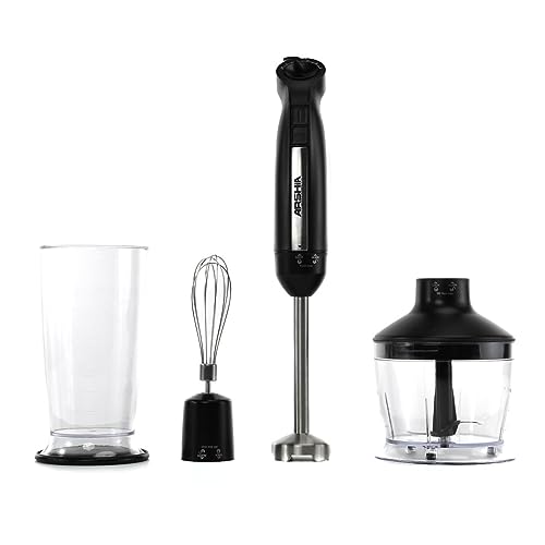 Arshia - خلاط يدوي 3 في 1 HB151-2567 اسود 600 واط 2 زر سرعة 800 مل ملمس ناعم امن للاستخدام غسالة الاطباق شفرات من الستانلس ستيل ضمان 18 شهر ارشيا