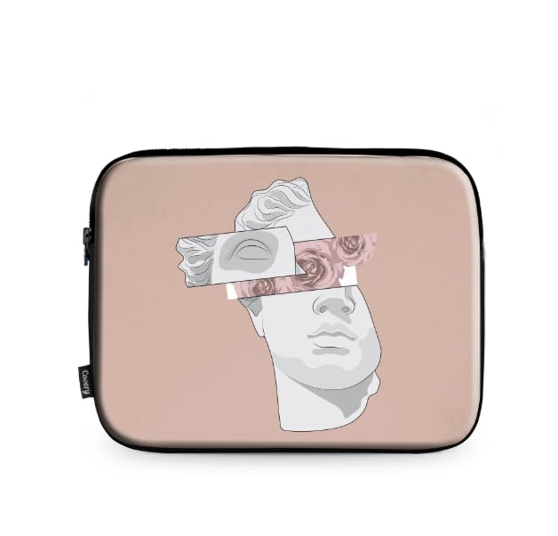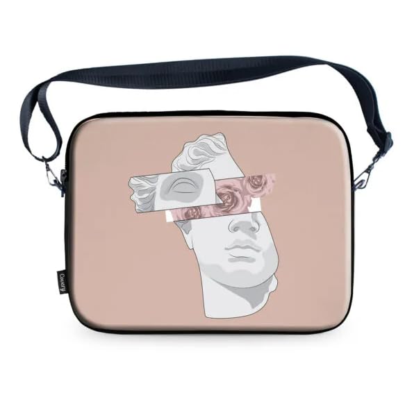 Artistic Laptop Sleeve Bag with Shoulder Strap, Abstract Design, Beige and White, 33 cm