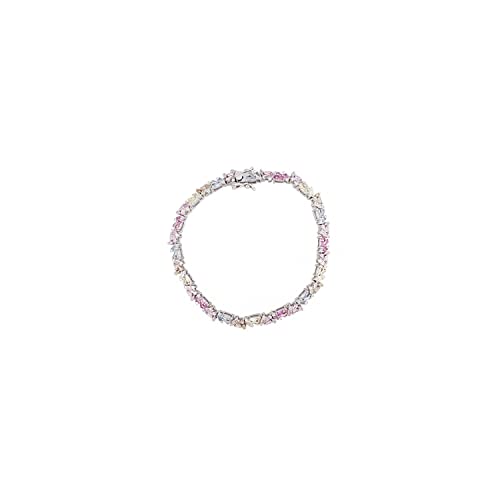 Asfour Crystal - Asfour Crystal Tennis Bracelet With Multi Color Baguette cut Stones In 925 Sterling Silver