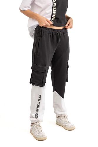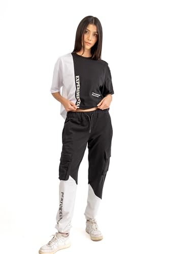 1 x ASTK Relaxed Sweatpant with Pockets for Women, Large, White/Black