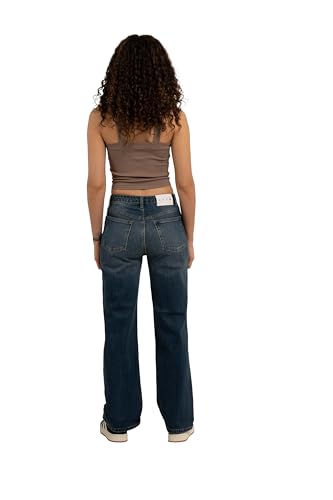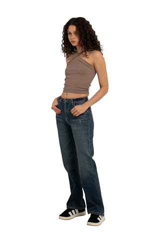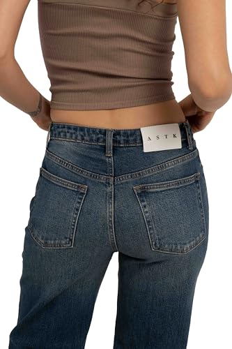 1 x ASTK Stylish High Rise Wide-Leg Jeans with Crystal Letters for Women, Size 38, Medium Blue
