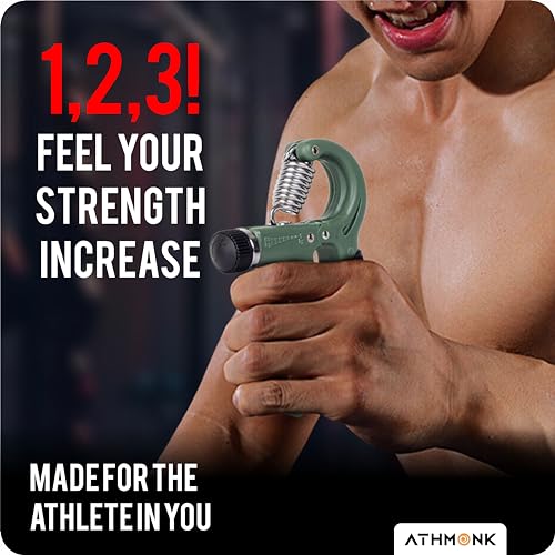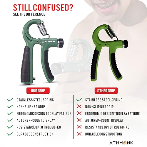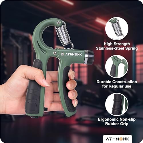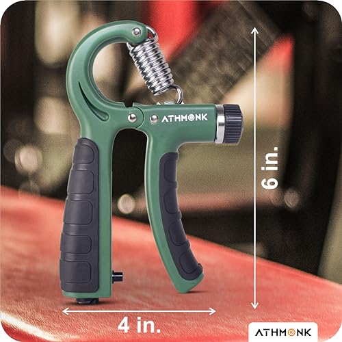 Athmonk - أداة تمارين وتقوية قبضة اليد والأصابع للعلاج الطبيعي والتعافي من الإصابات وتمرين الساعد والذراع والمعصم في الجيم بسوستة من الصلب وعداد بمستوى قوة 60 كجم قابل للتعديل من اثمونك، لون أخضر