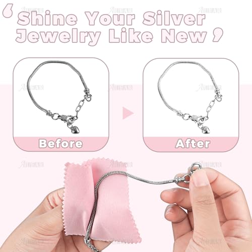 AUEAR - AUEAR, 100 Pack Jewelry Cleaning Cloths, Polishing Cleaner Cloth for Sterling Silver Gold Platinum Small Diamond Polish Cloth Pink & Blue 8x8cm
