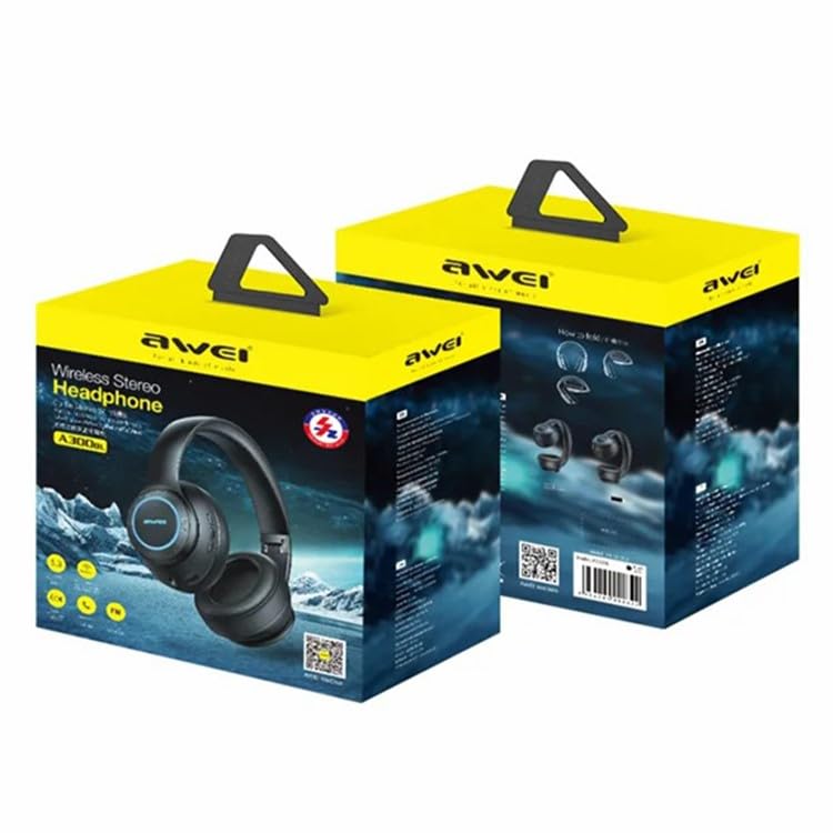 awei - سماعة رأس ستيريو لاسلكية A300Bl من اوي، أسود، فوق الأذن