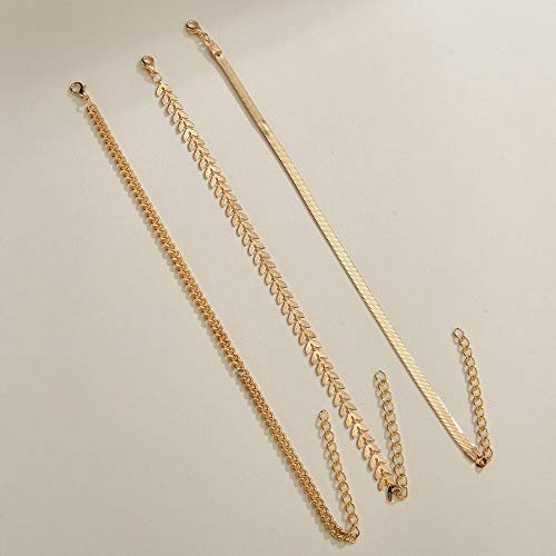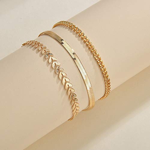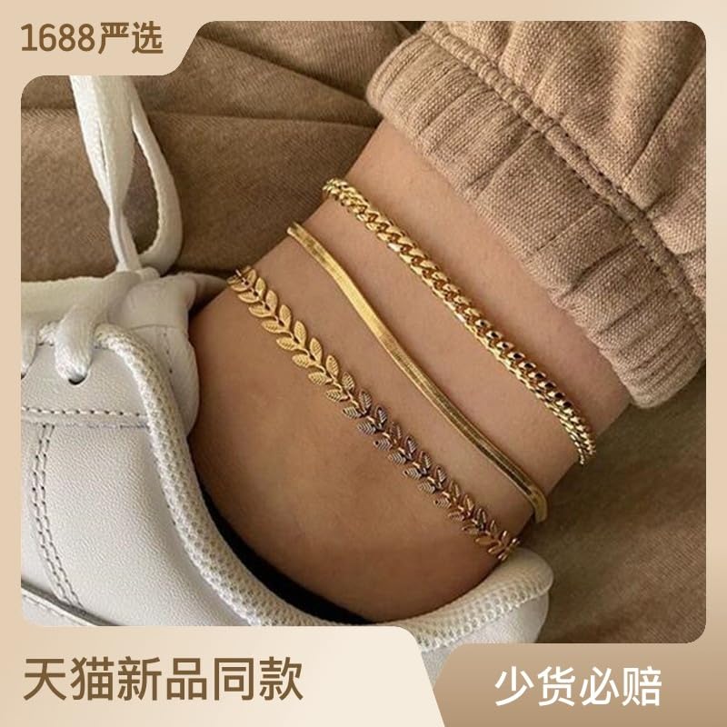 AXIYIBZI - Ankle Bracelets for Women Gold Layered Anklets Waterproof Herringbone Cuban Figrao Rope Tennis Dainty Chain Set Summer Beach Foot Jewelry Gifts for Girls, One Size, Metal