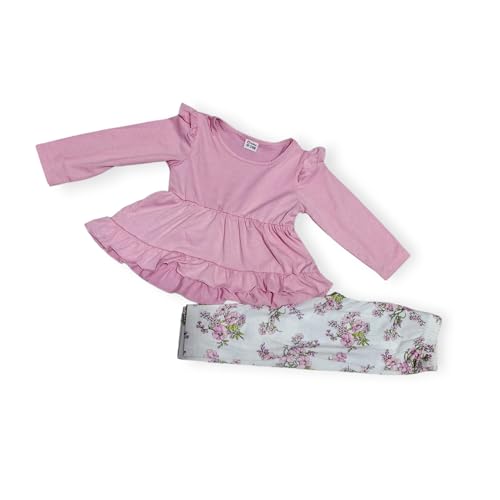 Generic - Baby Clothes Set, Pink Ruffle Dress with Floral Print Pants, 2 Pieces