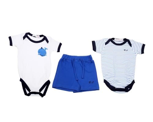 Generic - Baby Club cotton set of 3 pieces bodysuit size 18 months for boys-Navy&White