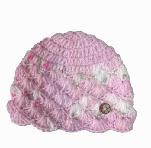 Generic - طاقية صغيرة ناعمة كروشيه للبنات البيبي (منذ الولادة-3 أشهر) وردي