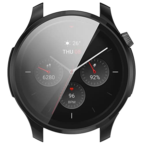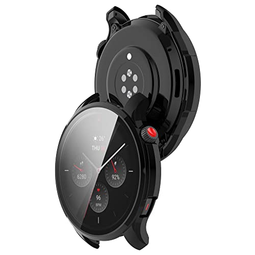 BabyValley - جراب حماية بتغطية كاملة من البولي كربونات الصلب مزود بشاشة لساعة امازفيت GTR 4 السمارت اسود+اسود متعدد لساعات ذكية بولي يوريثين حراري