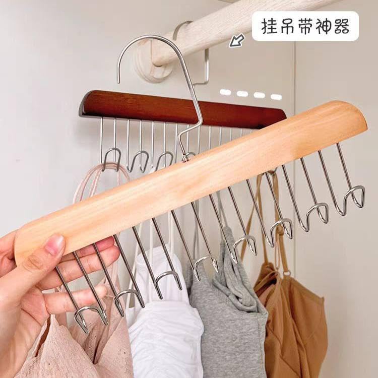 - Multi-hook hanger helps organize clothes and accessories inside the closet.