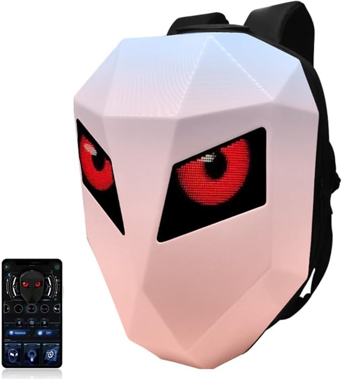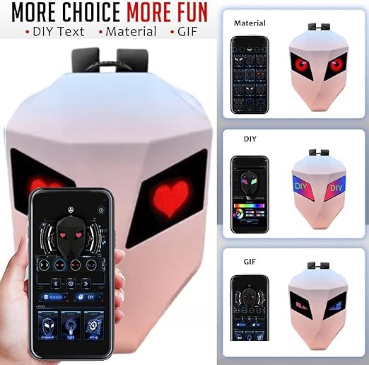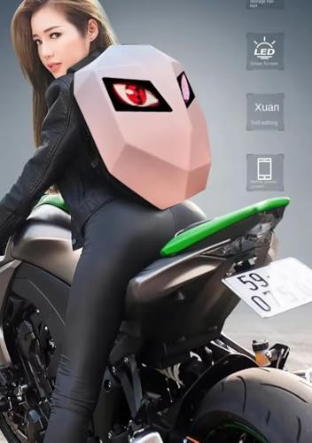 Generic - Backpack Carbon Fibre3D Hard Shell With LED Eyes Motorcycle Programmable Digital ScreenTravel Waterproof Outdoor -Pink