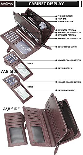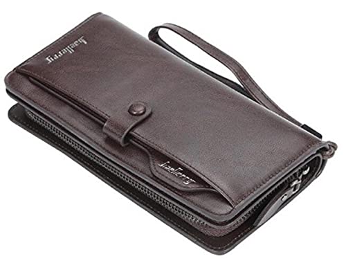 Baellerry - الرجال النساء محفظة جلدية حقيبة اليد طويل غلق بمشبك المحفظة متعددة الوظائفر - بني