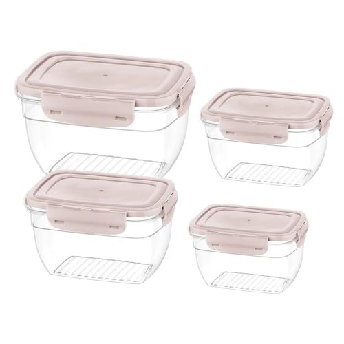 bager - Bager Cook&Lock Colored Cover Rectangular Storage Container (575+1050+1850+3100 Ml) (Deep), Pink