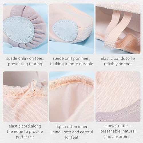 - ❤️【تصميم مريح】يتميز حذاء الباليه خفيف الوزن بتصميم يوفر التهوية لقدميك. مزود بنعل داخلي قطني لتحسين راحة الحذاء ونعومته وليونته. الشريط المرن أكثر مرونة. تُوصِي راقصات الباليه المحترفات بارتداء هذا الحذاء الرائع.