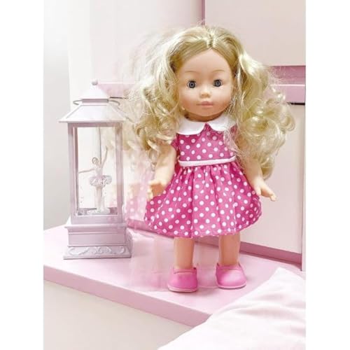 - إن مولي عروسة لعبة لطيفة ترتدي فستان وردي منقط ولديها شعر أشقر. يمكن للبنات الصغيرات المشي والغناء معها.
