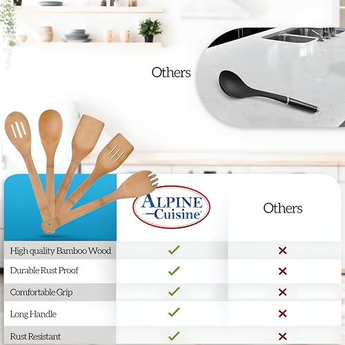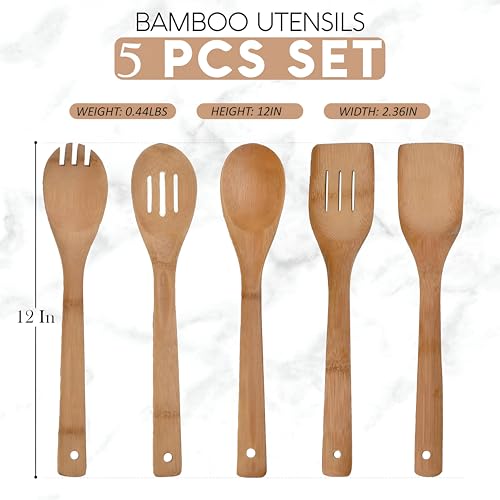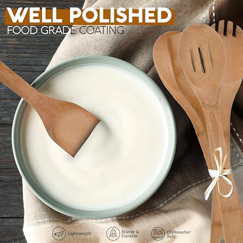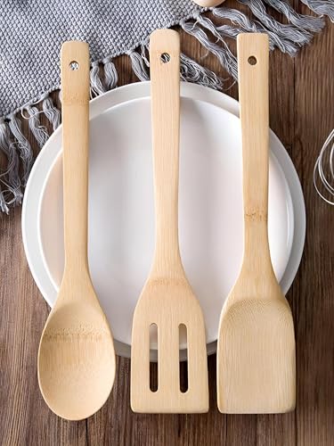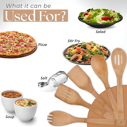 - COMPLETE COOKING AND SERVING TOOLS: This bamboo cooking tool set provides full utility, perfect for a variety of kitchen tasks. Whether you're stirring ingredients, tasting sauces or serving meals, this trusted set ensures you get the right tool for every cooking process.