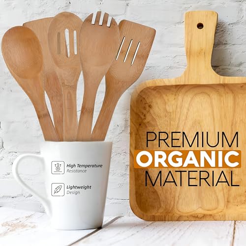 - HIGH QUALITY BAMBOO MATERIAL: Our cutlery set is made of 100% natural bamboo, ensuring a lightweight and durable option for cooking enthusiasts. Not only are these tools practical, they are also versatile, serving as excellent frying and mixing tools that enhance your cooking experience.