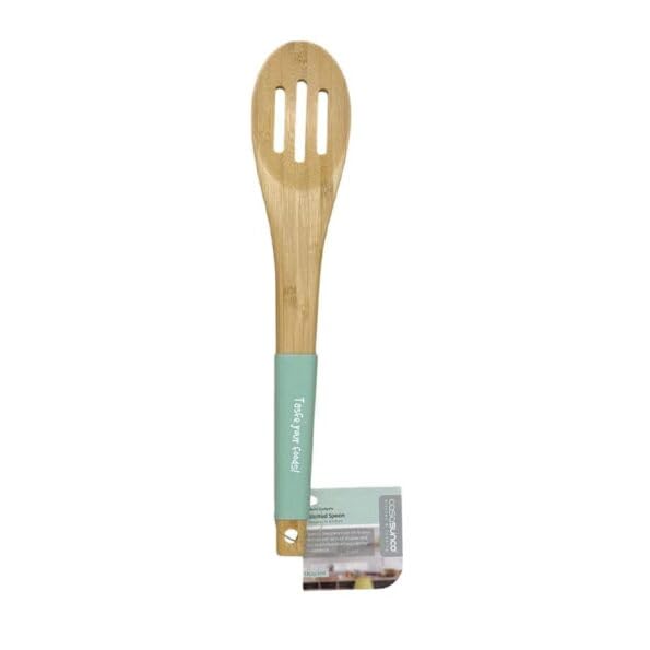 Generic - Bamboo Slotted Serving Spoon with Mint Green Silicone Handle, Kitchen Cooking Utensil