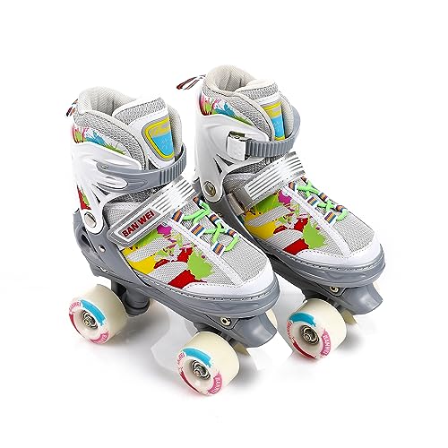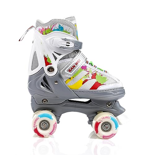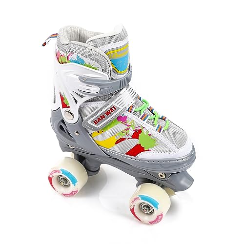 Generic - Ban Wei Adjustable Roller Skate Shoes - White/Silver