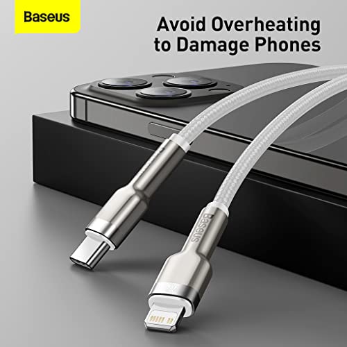 Baseus - كيبل بيانات معدن سلسلة كافولي USB نوع سي الى لايتنج بي دي من باسيوس، 20 وات، 1 متر- ابيض، لمحول الشحن