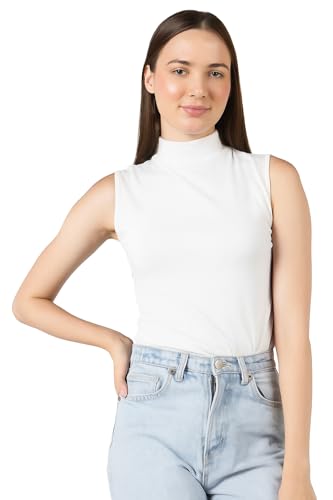 Generic - توب بيسيك بدون أكمام برقبة عالية - كمودو - 93% قطن 7% ليكرا - أبيض