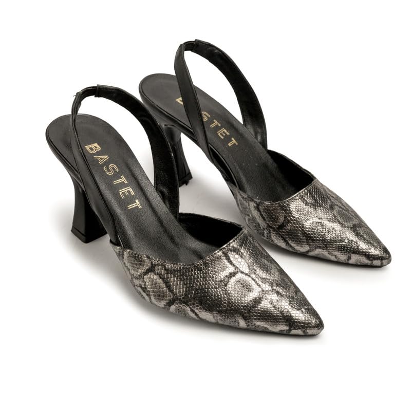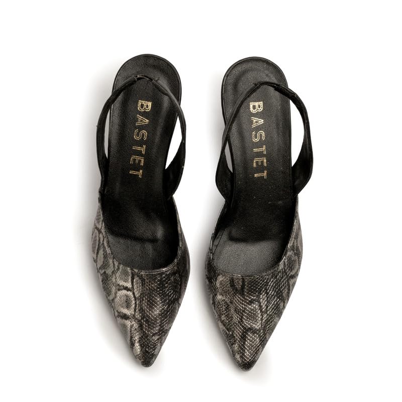 BASTET - BASTET "Sekhmet" Women’s 7cm Slingback Heels – Pointed Toe Snake Print Party Shoes – Bold & Stylish - size