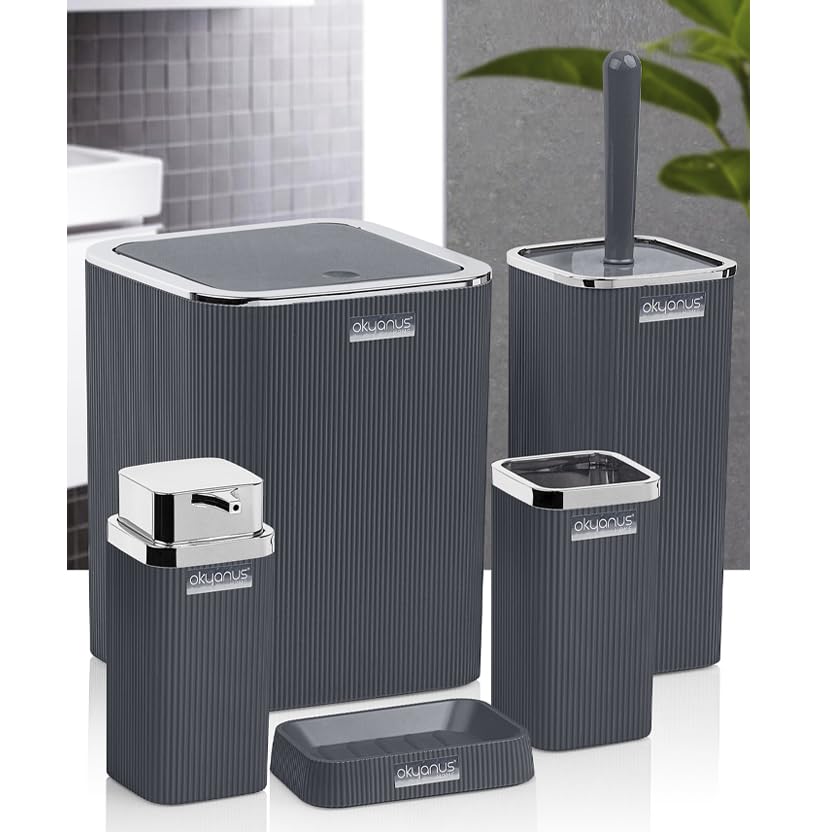 Generic - Bathroom Accessories Set - 5 Pcs Decor Bathroom Set (Stella) - Silver Frame