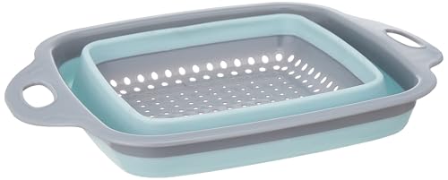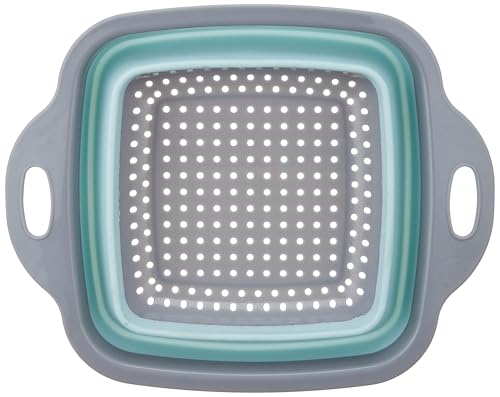 BB - BB Square Silicone Strainer with Foldable Handle, Small, Grey/Sky Blue