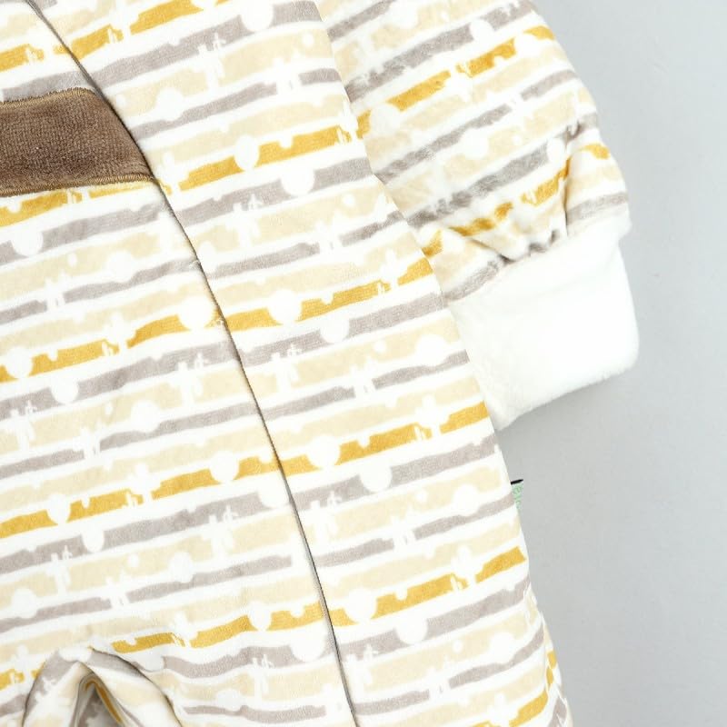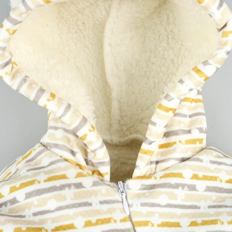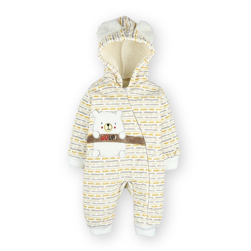 Generic - سالوبيت شتوي للاطفال بتصميم دب مع بطانة من الصوف وغطاء راس على شكل اذني دب، اصفر، مقاس 6-12 شهر