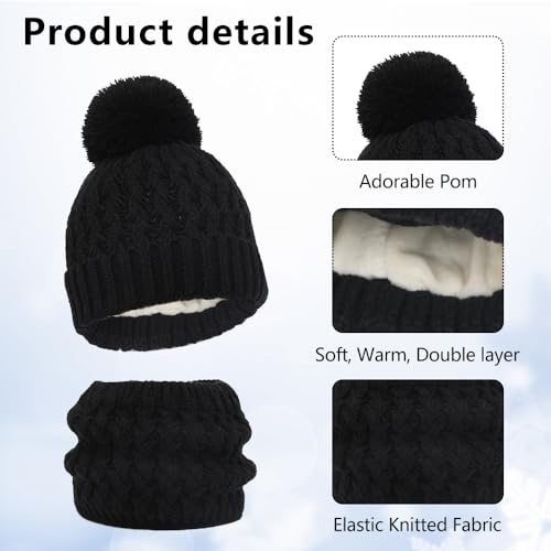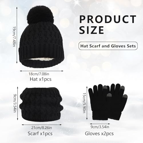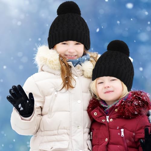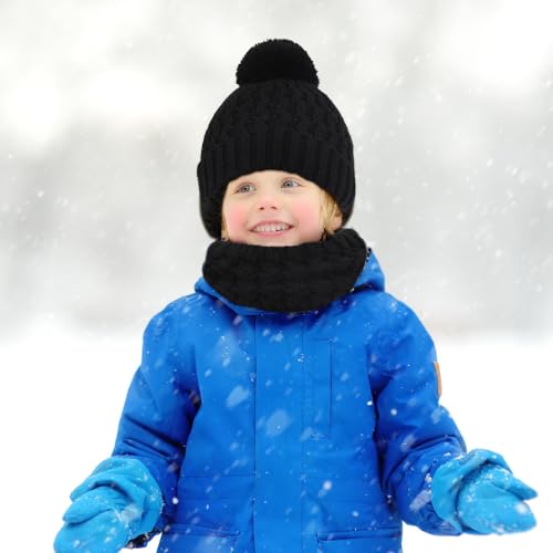 Bekecidi - Kids Winter Hat Scarf Gloves Set, Thermal Knitted Beanie Hat Scarf Touch Screen Gloves Set Warm Thick Fluffy Toddler Pom Pom Bobble Hats Neck Warmer for Girls Boys Age 1-6
