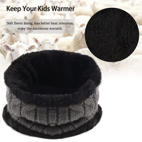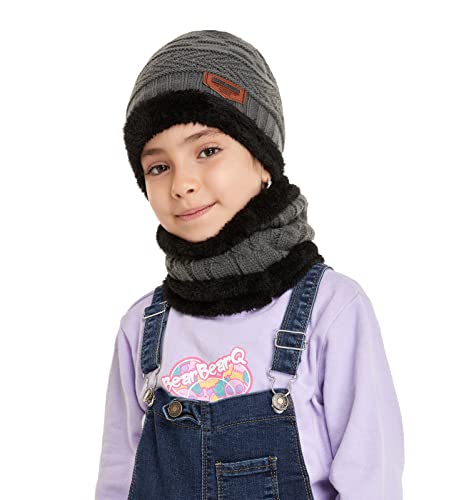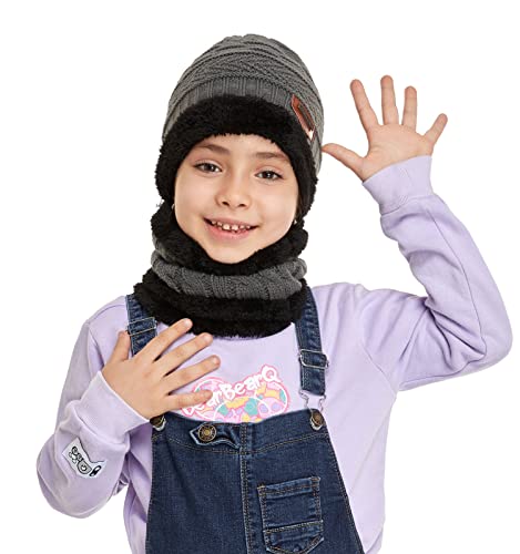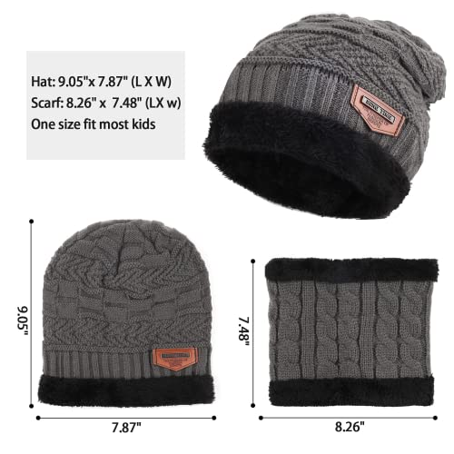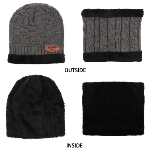 Bequemer Laden - Bequemer Laden Winter Warm Hat Beanie Scarf Set Wool Knitted Hat Winter Hat and Loop Scarf with Thick Fleece Lining for Men and Women, gray, One Size