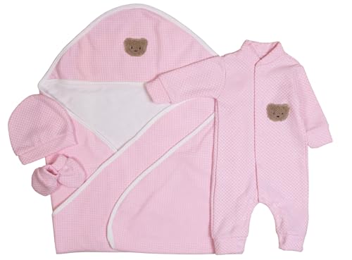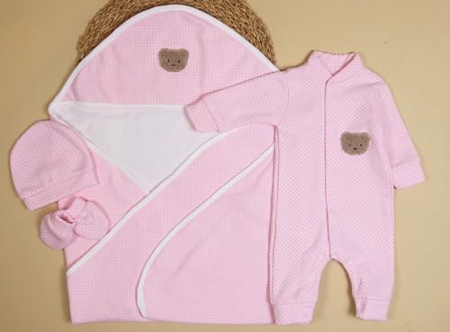Generic - طقم سالوبيت قصير قطن تيدي من بيرسو، 4 قطع، 0-3 اشهر - بينك