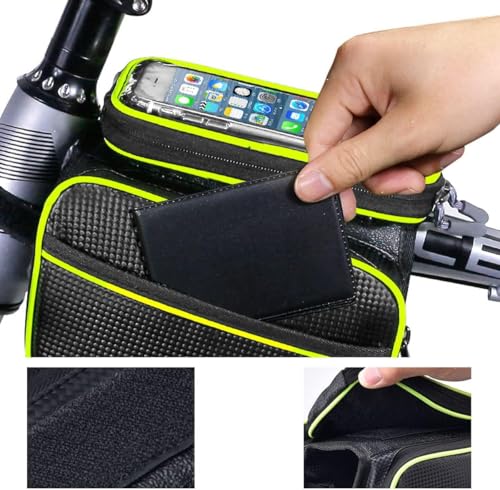 Generic - Bicycle Bag Bag Frame Bag, Touch Screen Waterproof Bicycle Accessories Bag for Mobile Phone and Personal Collectibles, Saddle Bag Black Line Green - KaberEgypt 2020