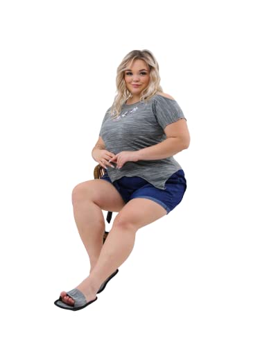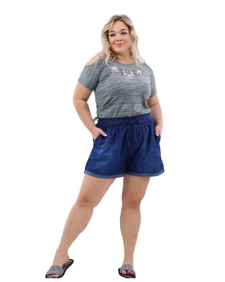 Generic - طقم كاجوال بيتي بدي مطرز وشورت جينز خفيف بجيوب وسليبر