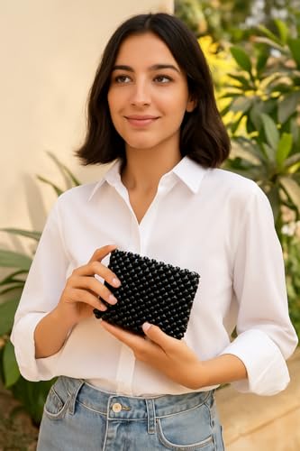ZECOTEX - Black Beaded Clutch Purse for Women | Elegant Evening Handbag for Parties & Weddings | Classic Pearl-Inspired Night Bag (Black)