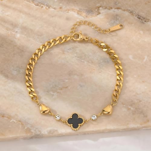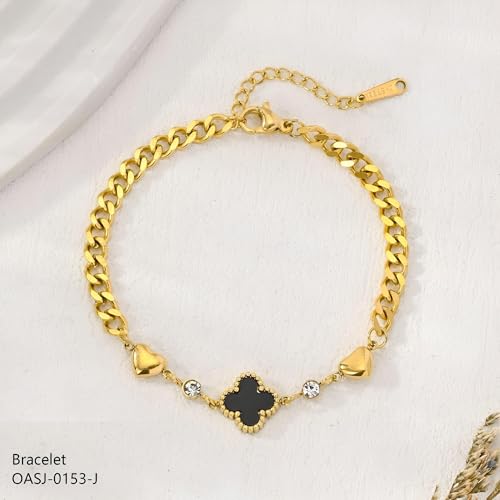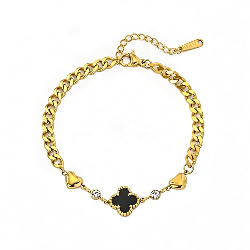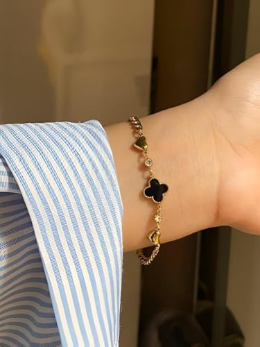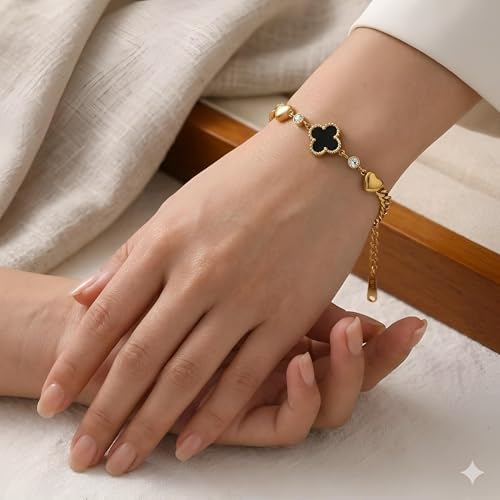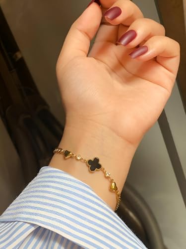 Generic - سوار اسود - سلسلة انيقة من الستانلس ستيل باربع اوراق برسيم للنساء بطلاء لا يفقد بريقه وخفيف الوزن ومريح ومثالي للارتداء مع قطع المجوهرات الاخرى