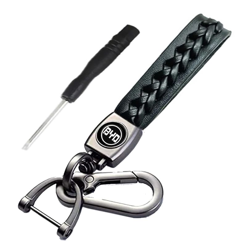 Generic - ميدالية مفاتيح من الجلد المضفر باللون الاسود متوافقه مع شعار بي واي دي
