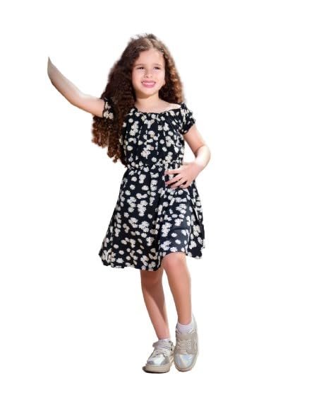 Generic - black dress for girls with beige graphic