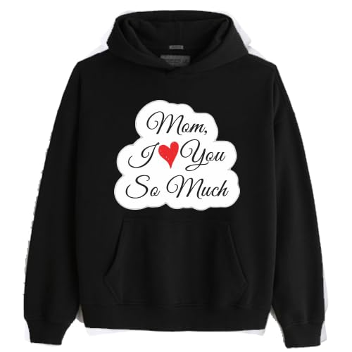Generic - Black Hoodie with Mom I Love You So Much Print, Pullover Sweatshirt with Pocket Size (4XL)