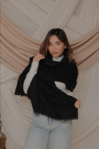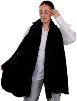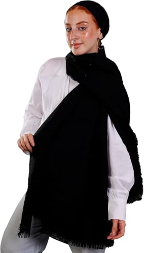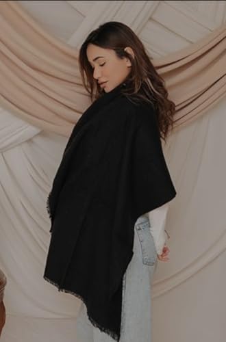 Generic - شال موهير أسود، وشاح شتوي فاخر، شال كبير دافئ للنساء، أكسسوار أزياء أنيق