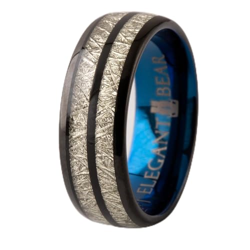 Elegant Bear - Black Tungsten Carbide Ring inlaid with artificial meteorites A117