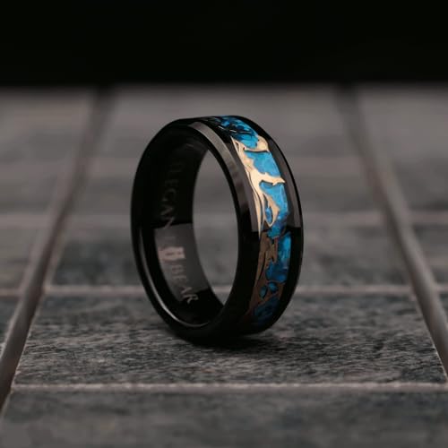 Elegant Bear - خاتم من كربيد التنجستين الاسود مرصع بالالياف الكربونية الزرقاء A139