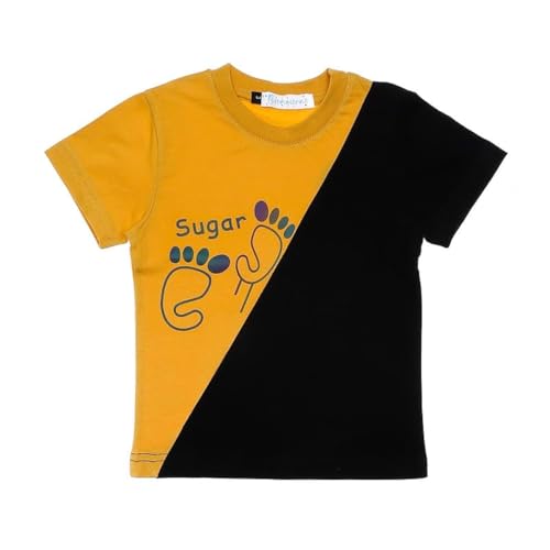 BONGO - تيشرت بلونين بطبعة أقدام طفل بيبي من بونجو, أصفر، 1 سنة، للأولاد