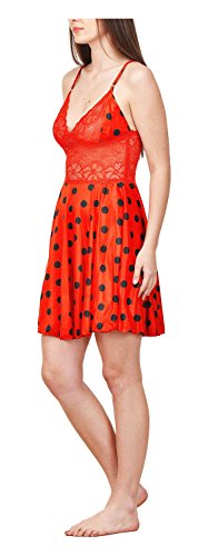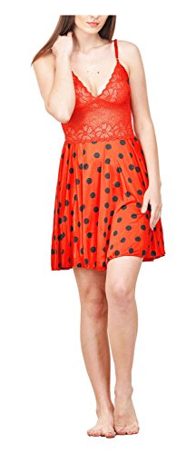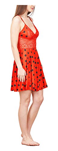 BOOSAH - فستان بيبي دول من الساتان للنساء من بوساه، لون احمر واسود، مقاس 40