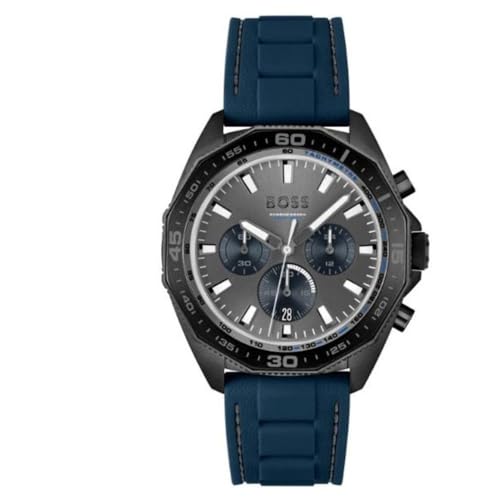BOSS - BOSS Chronograph Quartz Watch for Men with Blue Silicone Bracelet, 1513972, Blue & Black, strap