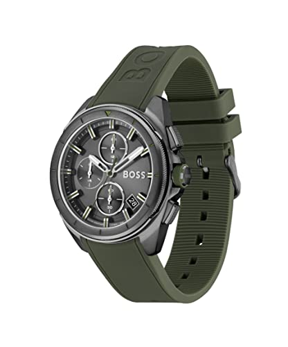 Hugo Boss - BOSS Chronograph Quartz Watch for Men with Olive Green Silicone Bracelet - 1513952, Grey, strap