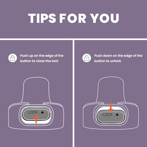 - أغطية علوية قابلة للطي: تحتوي زجاجة المياه المصنوعة من الستانلس ستيل على غطاء علوي قلاب لا يسمح لك فقط بفتح الغطاء بسهولة عن طريق الزر للشرب مباشرة، ولكن أيضًا بها قفل على الغطاء يغلق الزجاجة لتجنب التسرب عند عدم استخدامها