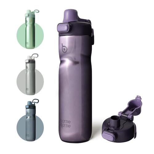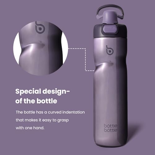 BOTTLE BOTTLE - زجاجة مياه معزولة سعة 710 مل مع مقبض وغطاء علوي قلاب للدراجة، زجاجة مياه بغطاء بزر ضغط مانعة للتسرب محمولة للسفر والرياضة وركوب الدراجة، أرجواني