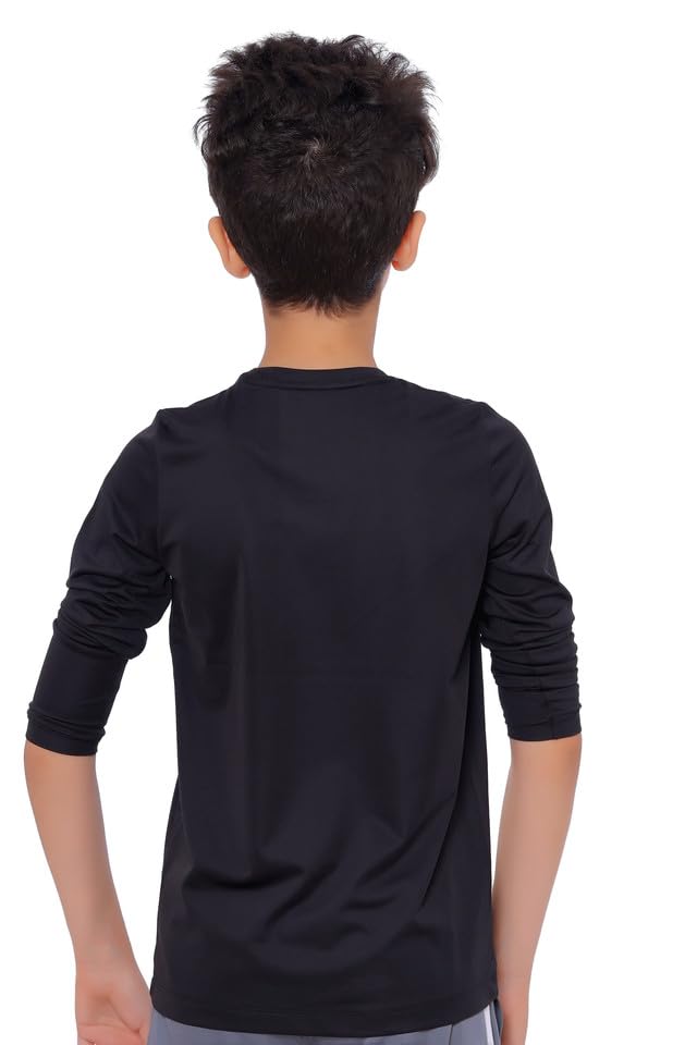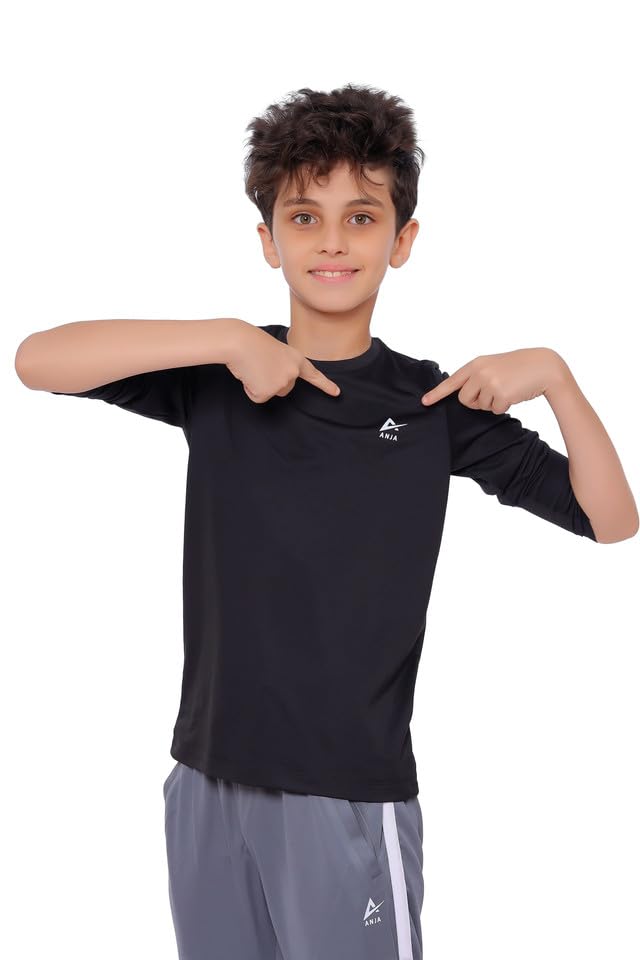 ANJA - Boys' Black Long Sleeve Sports T-Shirt – Breathable Fabric, (4-6 Years)